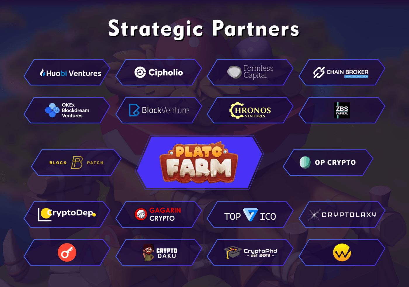 - Plato Farm bắt đầu với việc người chơi sở hữu một trang trại nhỏ. Theo một cách thông thường, người chơi trồng (nhân giống) các loài thực vật, động vật và biến một vùng đất cằn cỗi thành một ngôi làng xinh đẹp và năng suất với các mã token và nhiều công cụ NFT khác nhau. Trong thành phố, người chơi cũng có thể thành lập guild chơi game của riêng mình và kiếm tiền khi chơi!