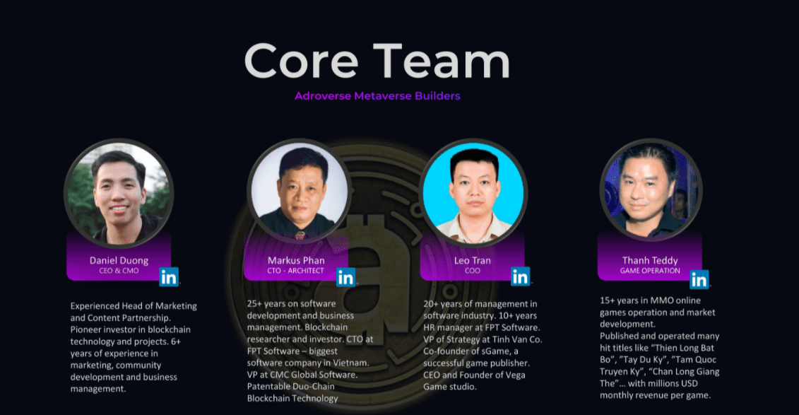 Adroverse là một dự án đang phát triển tập trung vào việc tạo ra một metaverse phi tập trung trên các mạng multichain nơi người dùng có thể chơi các game blockchain, gặp gỡ bạn bè và đồng thời kiếm tiền cho thời gian của mình. Dự án đảm bảo liên tục đổi mới và phát triển, áp dụng năng động các khuôn khổ quản lý kinh tế và công nghệ hiện đại nhất, cung cấp nền tảng ổn định cho các trò chơi và ứng dụng phi tập trung.