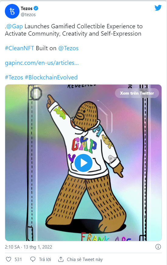 Mặt khác, màn thể hiện của Tezos thật sự quá ấn tượng trong cuộc chơi NFT để thuyết phục Gap, không thua kém gì những nền tảng phổ biến đang dẫn đầu xu hướng như Decentraland (MANA) và The Sandbox (SAND).