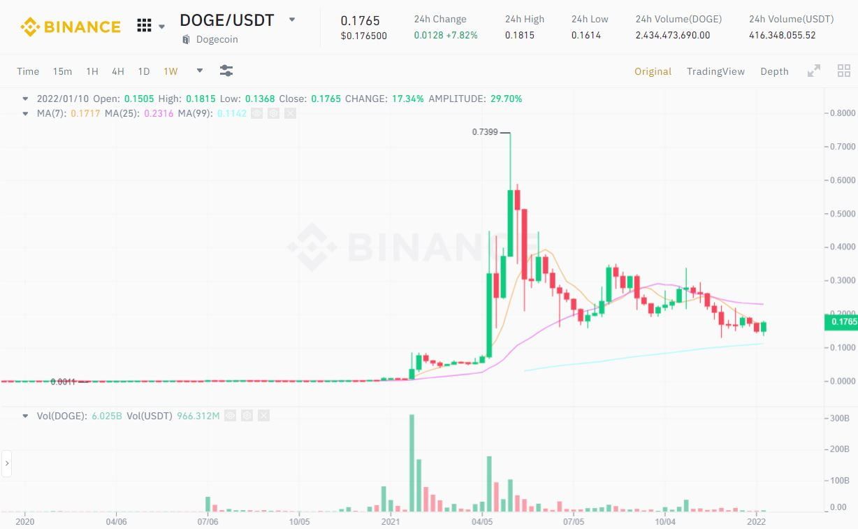 Theo thống kê, trong năm 2022 sẽ có khoảng 25% doanh nghiệp ở 9 quốc gia lên kế hoạch chấp nhận thanh toán bằng tiền điện tử. Hơn nữa, 13% người dùng ở những quốc gia này dự đoán các cửa hàng bán lẻ sẽ chấp nhận thanh toán tiền mã hóa trong vòng 12 tháng tới. Trong đó chắc chắn phải kể tới hãng xe điện Tesla của tỷ phú Elon Musk, người không ngại lăng xê đồng Dogecoin trở thành “chú chó” được săn đón nhất thế giới. Biểu đồ của DOGE đạt đỉnh vào tầm tháng 7 năm ngoài, tuy nhiên sau đó là chuỗi thời gian liên tục lao dốc. Tuy nhiên, vài tháng trở lại đây song của nó bắt đầu ổn định hơn, có thể Elon Musk đã đúng khi lăng xê nhiệt tình đồng coin này.
