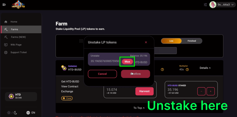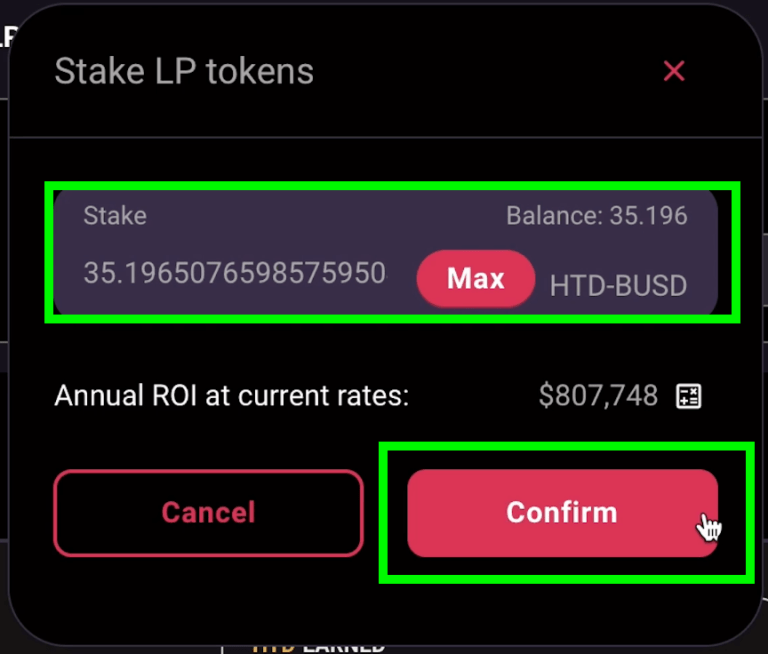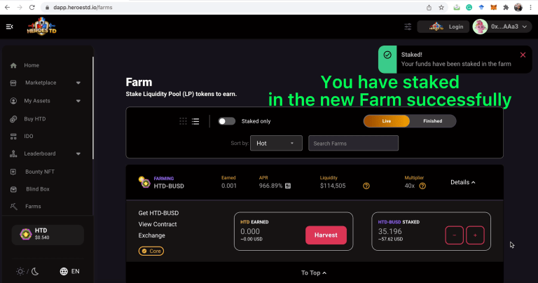Nhập Token $HTD anh em muốn đem đi farming vào sau đó xác nhận giao dịch