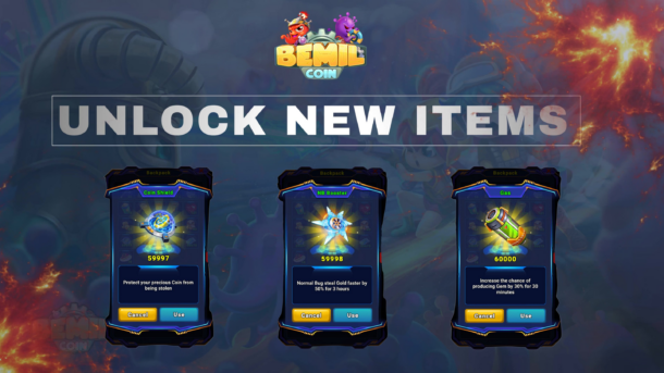 - 𝑪𝒐𝒊𝒏 𝑺𝒉𝒊𝒆𝒍𝒅: Đồ họa trông giống đĩa bay với một lớp bảo vệ Becoin, Coin Shield được đánh giá là một trong những vật phẩm cực kỳ hữu ích khi giúp người chơi bảo vệ Becoin của mình, tránh bị đánh cắp trước sự tấn công của người dùng khác.