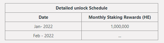 Phần thưởng HE được sử dụng trong stake được trích từ quỹ doanh thu Hoạt động game hàng tháng (nếu thiếu phần thưởng hoặc cần khuyến khích thêm nhà đầu tư, team sẽ tăng phần thưởng thông qua quỹ hệ sinh thái).