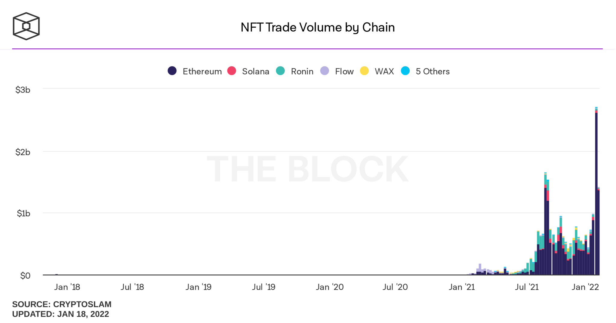 Khối lượng giao dịch NFT trên các blockchain khác nhau. Nguồn: The Block