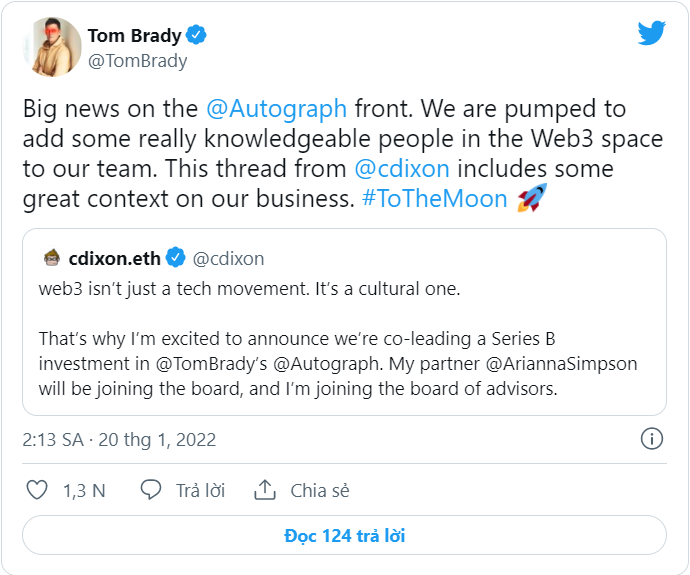 Autograph là marketplace NFT được đồng sáng lập bởi Tom Brady, “huyền thoại sống” của làng bóng bầu dục Mỹ.