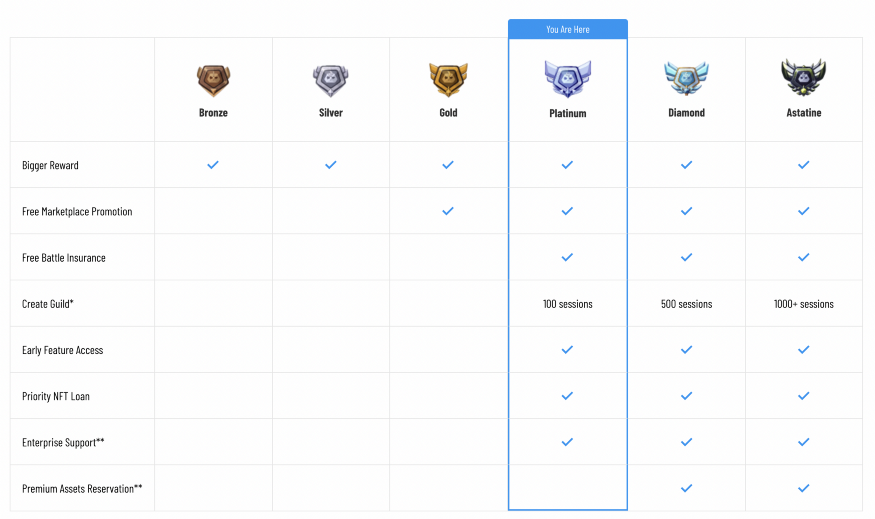 Sẽ không có gì là thiệt thòi nếu bạn trở thành một VIP trong Blockchain Monster Hunt khi đó là con đường ngắn nhất để tận hưởng những tính năng tốt nhất của trò chơi. Như hình ảnh bên dưới, người chơi VIP sẽ có khoản bảo hiểm miễn phí, khoản vay NFT Flash hay Guild. Tính năng VIP được tạo ra để người chơi có thể nhanh chóng hoàn vốn và tăng gắn kết giữa người dùng và trò chơi.