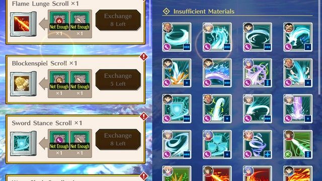 Game cung cấp tính năng luyện chiêu bằng cách thu thập đủ nguyên liệu để thăng cấp độ cho các chiêu thức mạnh hơn. Các nhiệm vụ trong game yêu cầu người chơi phải đạt được một số điều kiện nhất định để tham chiến. Bạn cần phải luôn sắp xếp đội hình để thoả các điều kiện này.