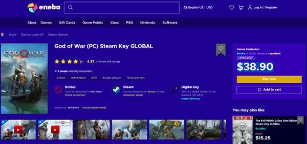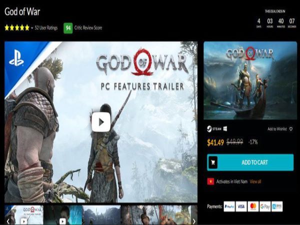 Hiện tại, phiên bản PC của God of War 2018 hiện đang có giá chỉ 38,90 USD (tương đương 880,000đ) trên trang bán lẻ Eneba và 41,49 USD (tương đương 940,000đ) trên trang Fanatical. Nếu game thủ mua game trước ngày 8 tháng 2, game thủ cũng sẽ nhận được một món quà bất ngờ trong chương trình giảm giá Tết Nguyên Đán của Fanatical. Đây có thể là bất cứ thứ gì từ tựa game miễn phí đến phiếu giảm giá cho lần mua game tiếp theo của game thủ. Chương trình khuyến mãi sẽ kết thúc vào ngày 9 tháng 2 cho nên game thủ quan tâm có thể truy cập vào đường link dưới đây để mua God of War 2018 với giá rẻ nhất. Một hạn chế duy nhất đó chính là việc game thủ sẽ cần có thẻ VISA để thanh toán, key game nhận được có thể kích hoạt trên Steam.