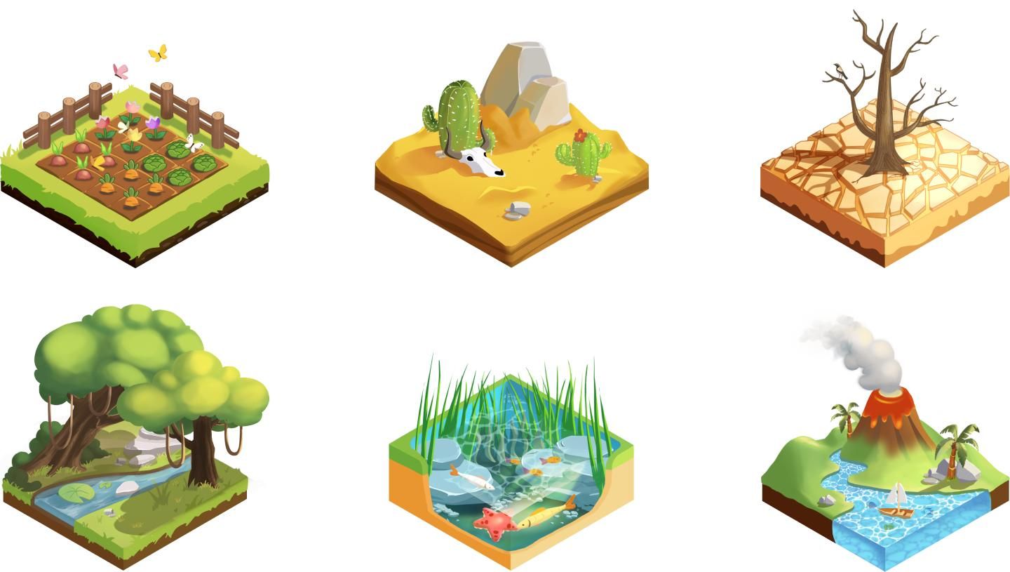 Tương tự như Character, khi vào game, người chơi sẽ nhận được đất trồng trọt mặc định (không phải vật phẩm NFT). Có tất cả 6 loại đất để người chơi khám phá với độ hiếm được xếp hạng lần lượt theo thứ tự: