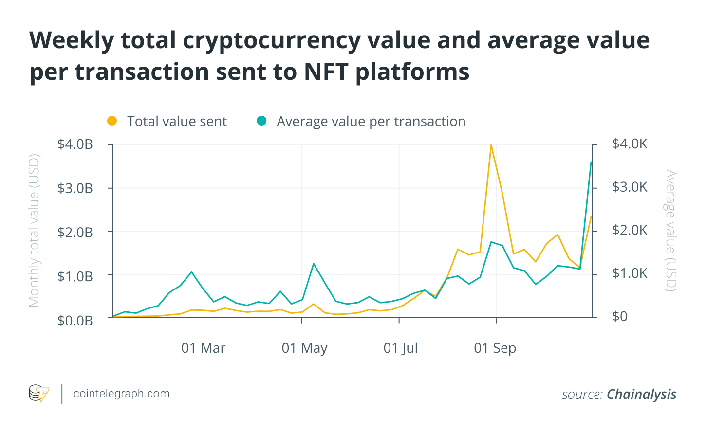 Ngành công nghiệp NFT đã phát triển nhanh hơn cả những người tham gia nó có thể tưởng tượng. Doanh số thị trường đã vượt qua 40 tỷ đô la vào năm 2021 chỉ trên chuỗi khối Ethereum. Một báo cáo thị trường NFT gần đây từ Chainalysis phát hiện ra rằng tổng giá trị tiền điện tử hàng tuần và giá trị trung bình trên mỗi giao dịch đã tăng cùng nhau từ tháng 1 đến tháng 10 năm 2021. Lý do chính cho sự tăng trưởng này là sự cường điệu đã bao quanh những tài sản này trong thời gian qua hai năm từ các nền tảng đúc tiền, trò chơi, thị trường, sàn giao dịch và các nền tảng khác.