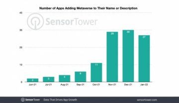 SensorTower lưu ý rằng, sau thông báo từ Meta (trước đây là Facebook) rằng họ sẽ tăng gấp đôi đối với các hoạt động metaverse của mình, số lượng ứng dụng cập nhật mô tả của chúng đã tăng 66%.
