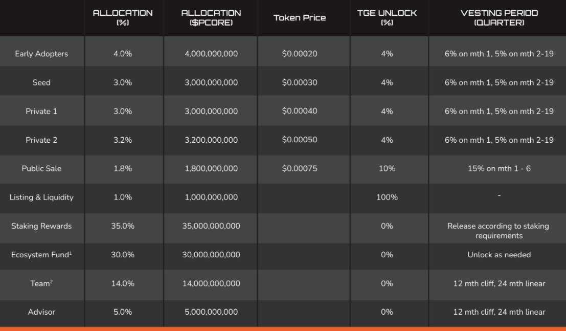 (Nguồn : https://metacryptal.net/pcore-token/)