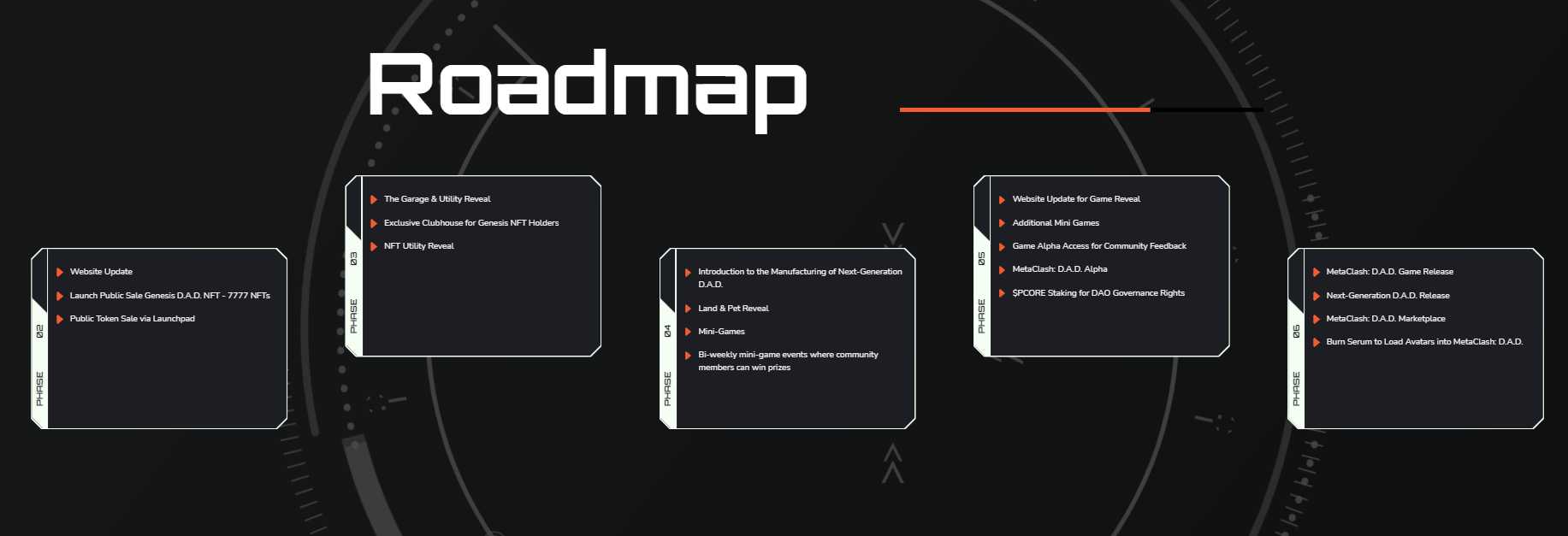 MetaClash: D.A.D. sẽ xây dựng một thế giới kỹ thuật số cho cộng đồng, bởi cộng đồng. Toàn bộ hệ sinh thái gồm các trò chơi play to earn, nơi tổ chức sự kiện thực tế ảo và các trò giải trí không ngừng phát triển. Các DAO hoàn toàn phi tập trung sẽ quản lý hệ sinh thái, hệ sinh thái này thưởng cho người dùng dựa trên kỹ năng, nỗ lực và đóng góp của họ. Hãy theo dõi Game6 để cập nhật những thông tin mới nhất về dự án.
