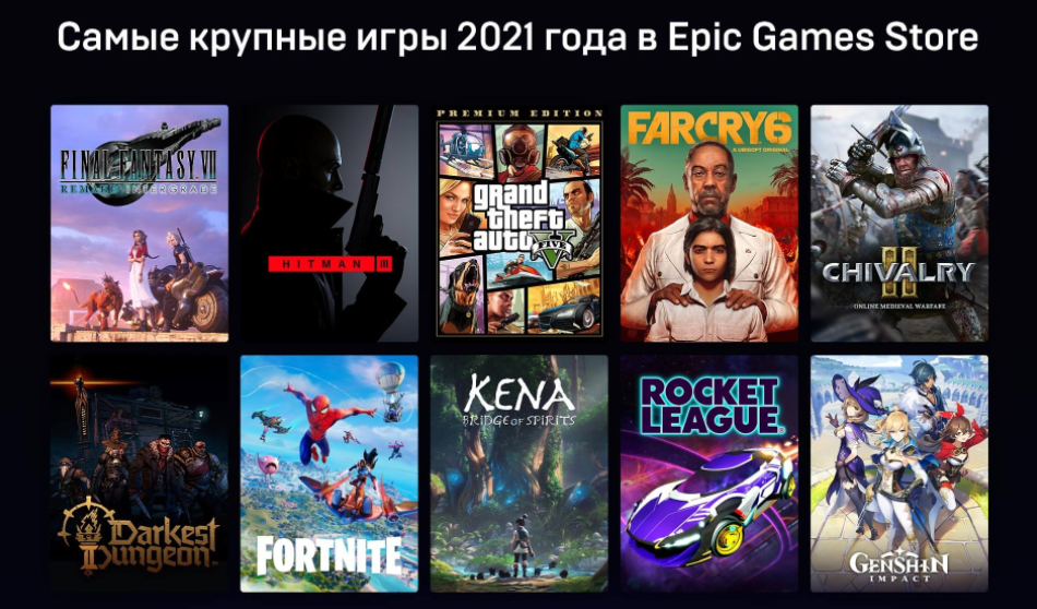 Epic Games Store cũng chỉ ra những trò chơi nào là được chơi nhiều nhất trên trang web vào cuối năm 2021. Như một phần của tổng kết, cửa hàng hứa rằng vào năm 2022 sẽ ra mắt chính thức các công cụ để phát hành trò chơi.