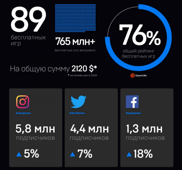 Epic Games Store đã tặng miễn phí 765 triệu bản game vào năm ngoái. Kết quả là, 76 trò chơi đã phá kỷ lục của chính họ về số lượng người dùng một lần (trung bình 13 lần).